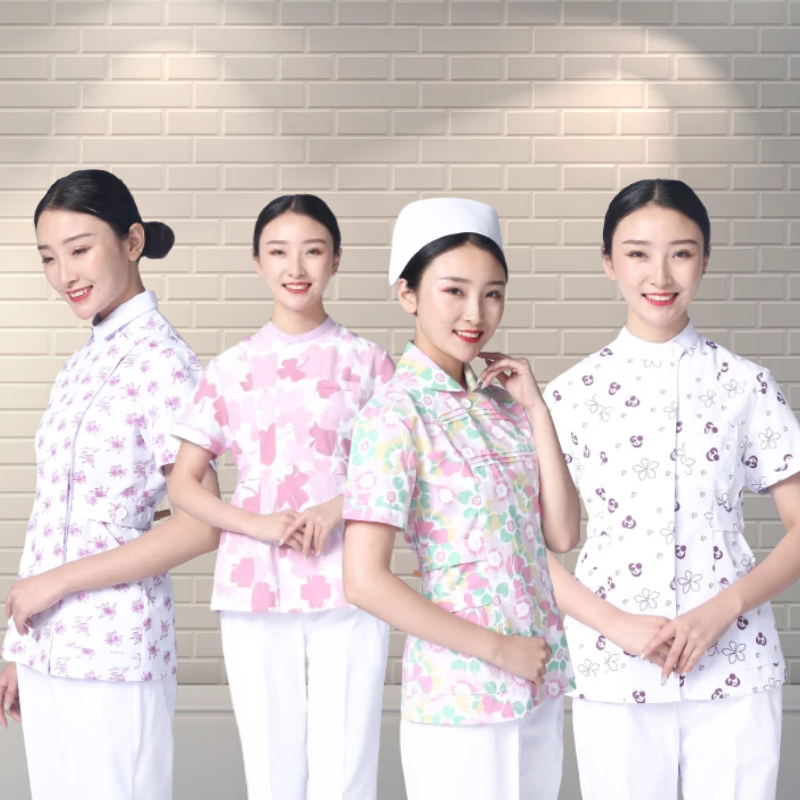 除了單色的護士服,現在還比較流行花色護士服,多用于兒科和產科,顏色比較柔和,仍舊是營造溫馨的環境。
